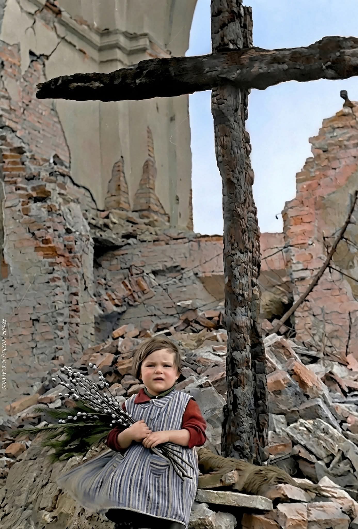 Dziewczynka w ruinach kościoła Niedziela Palmowa 1945 rok