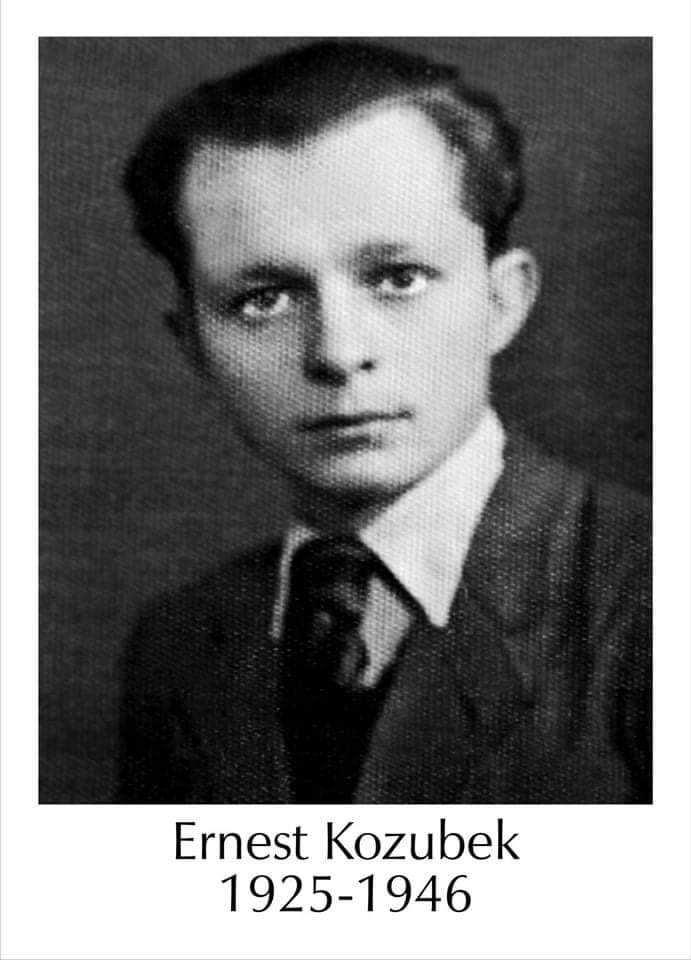 Otoczony przez grupę operacyjną UB w miejscowości Czerwone popełnił samobójstwo chor. Hieronim Rogiński, ps. „Róg” (w środku). Był uczestnikiem wojny obronnej z 1939 roku, później żołnierzem ZWZ-AK, a następnie Narodowych Sił Zbrojnych.
