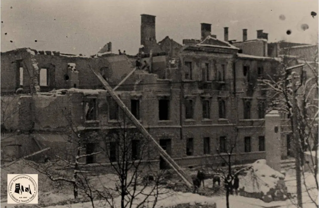 Nowy Targ - zniszczony budynek szkoły przy Placu Słowackiego