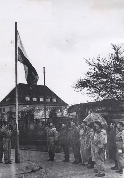 Wciąganie polskiej flagi na maszt w zdobytym Wilhelmshaven