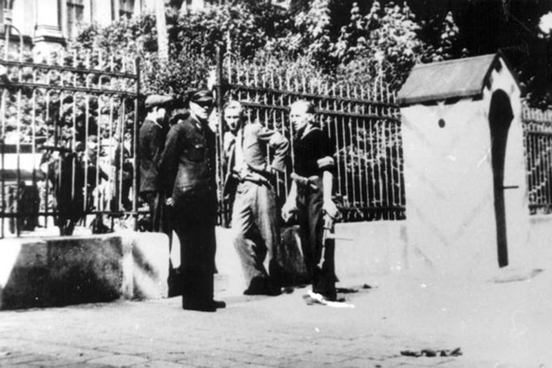 Żołnierze Armii Krajowej przed gmachem Politechniki Lwowskiej, 25 lipca 1944 rok