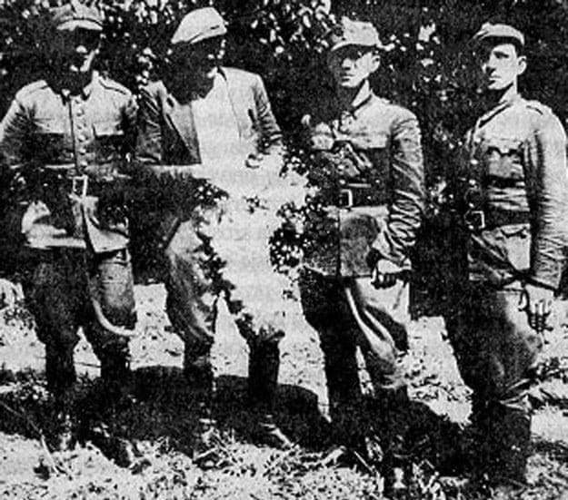 Żołnierze od lewej: Henryk Salach ps. „Grot”, Edmund Świderski ps. „Wicher”, Edward Wasilewski ps. „Wichura”, Paweł Surowicz ps. „Klon”