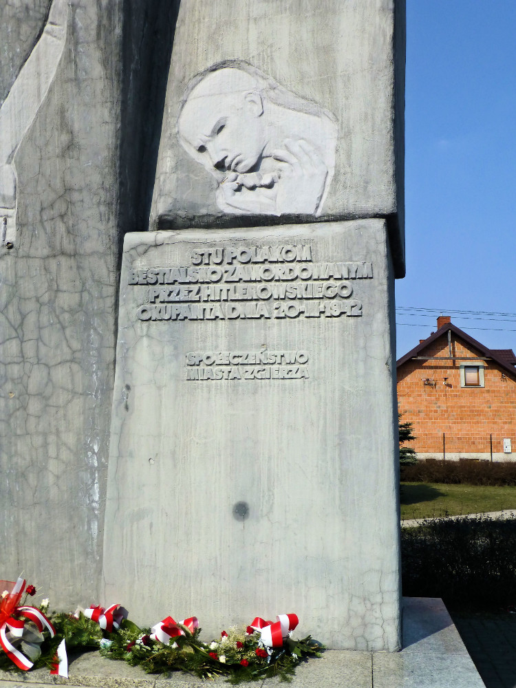Stu Polakom bestialsko zamordowanym przez hitlerowskiego okupanta 20.III.1942 r. Społeczeństwo miasta Zgierza